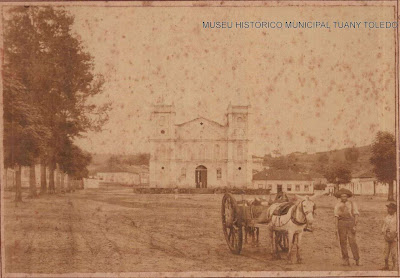 cazuarinas e cinamouros, destaca-se ao fundo a matriz.